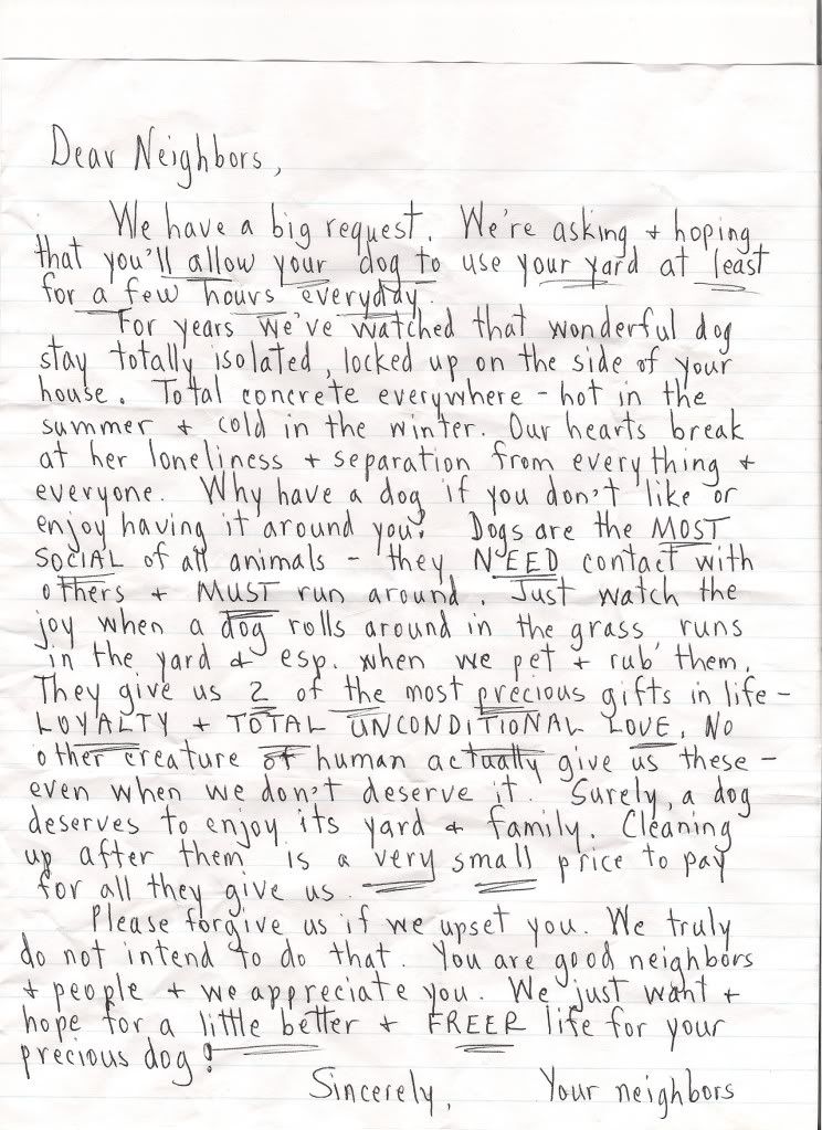 Yesterday we got a letter in the mail from an anonymous neighbor.