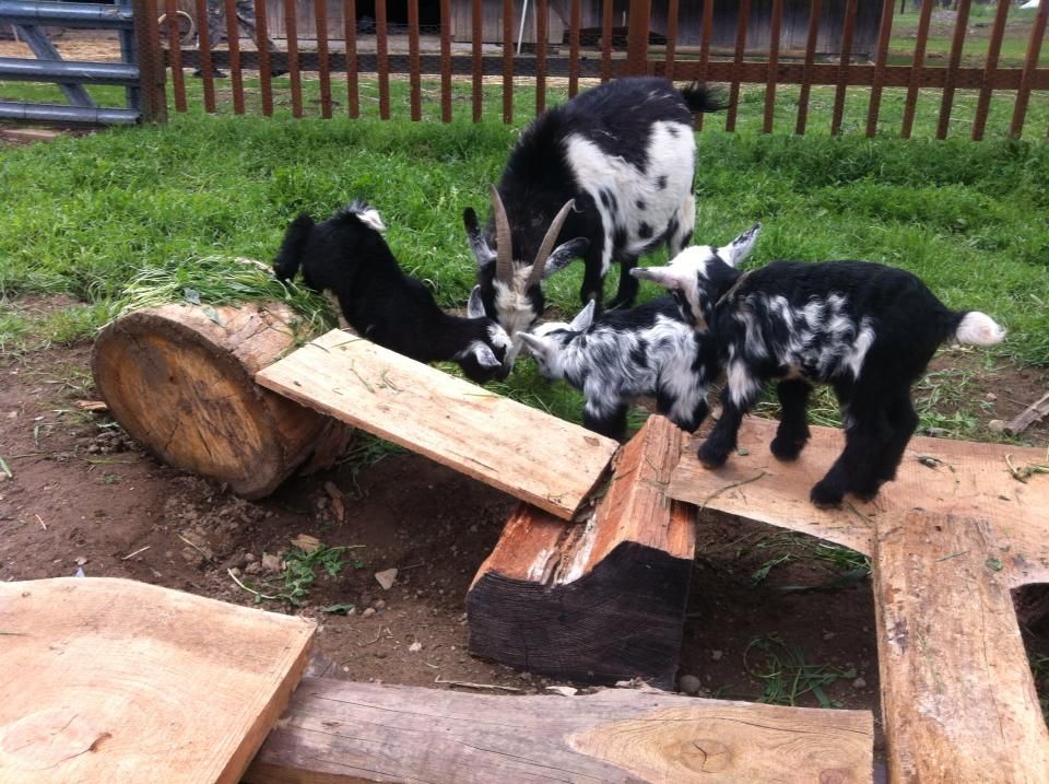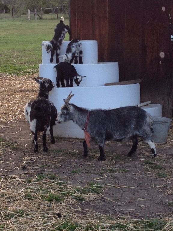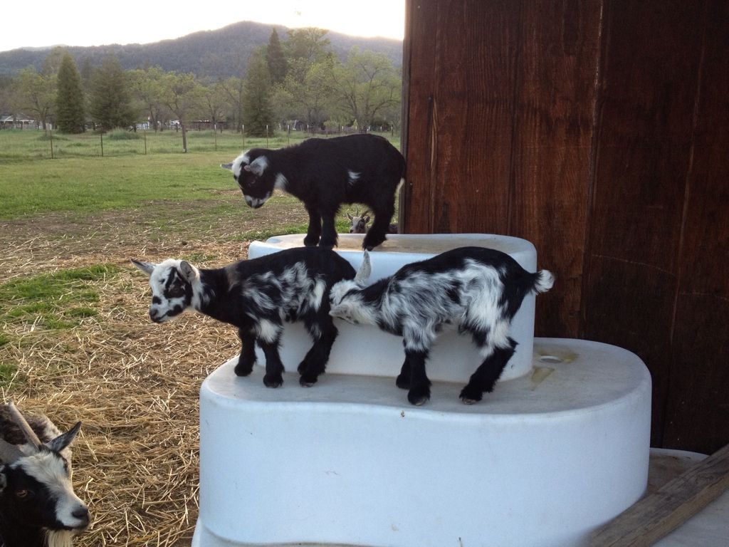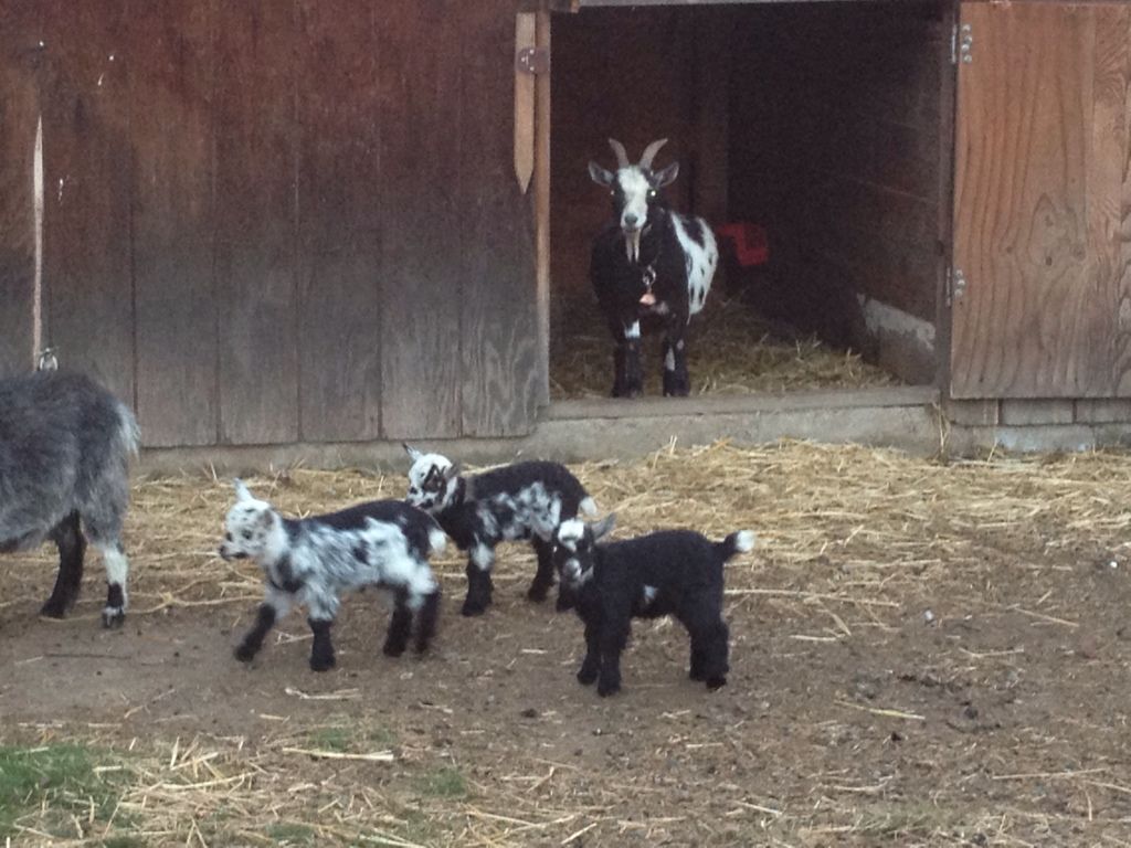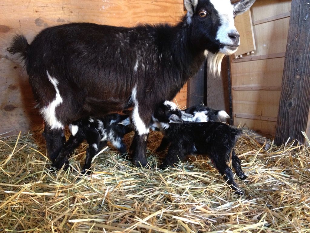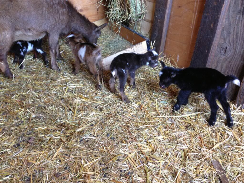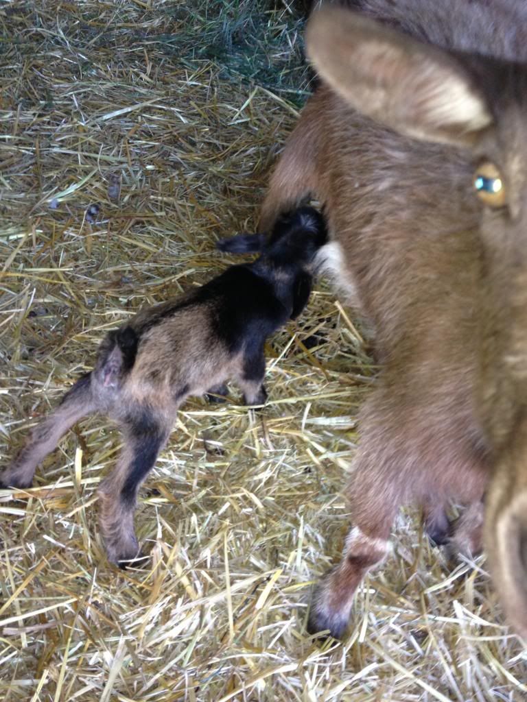 We had 3 pregnant does out of 4. This was my first experience breeding goats and being a midwife to goats! I feel so fortunate to have been there for the first two births. Both time they had the first one out already but it is definitely something to behold when those little babies sneeze out that goop and squeak for the first time!